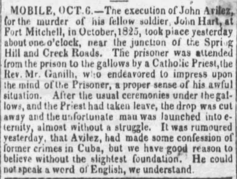 John Avilez was hanged in Mobile, Alabama, on October 5, 1827.