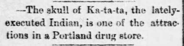 Ka-Ta-Ta was hanged in Portland on March 28, 1882.